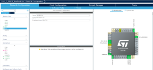 We have configured 2 USART devices. USART2 will communicate with the Bluetooth device and USART3 will be associated with a dumb terminal emulator. The USART2 is configured for a baud rate of 38,400 as this is the default for the Bluetooth devices. The USART3 which will be used for input/output to the dumb terminal is configured at 19,200 Baud. You can change the baud rate for the terminal, but suggest that you leave the baud rate at 38,400 for the Bluetooth devices.